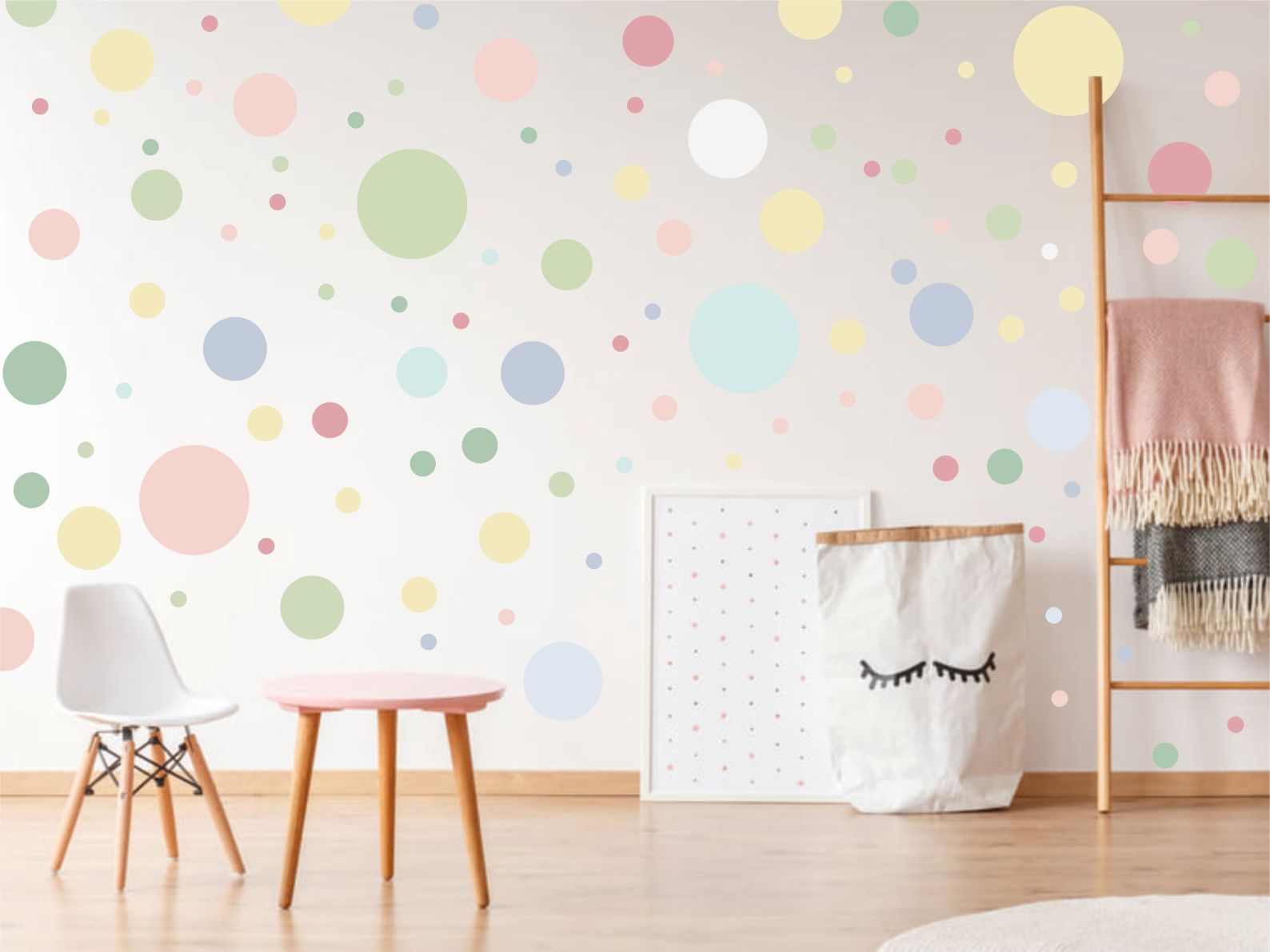 3. Полка точки в пастелни цветове - актуална идея за декорация в минималистичен скандинавски стил