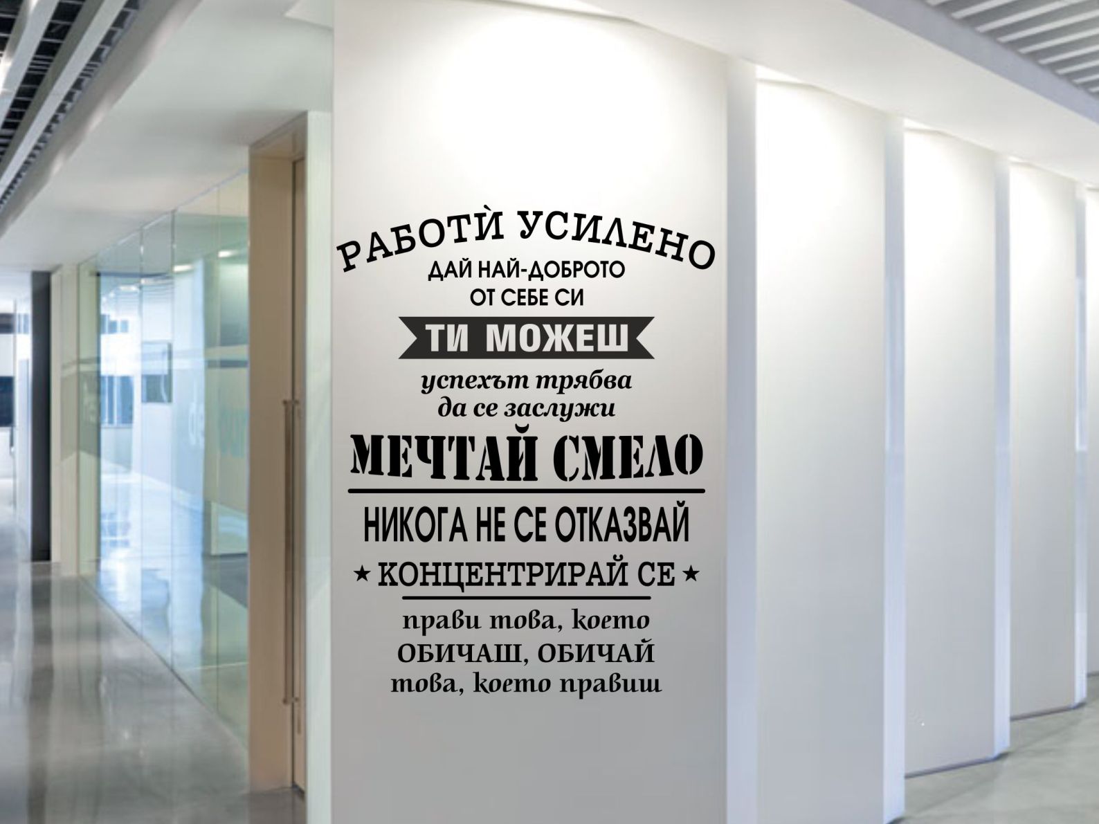 Мотивиращ стикер за стена, подходящ за декорация в офиса.