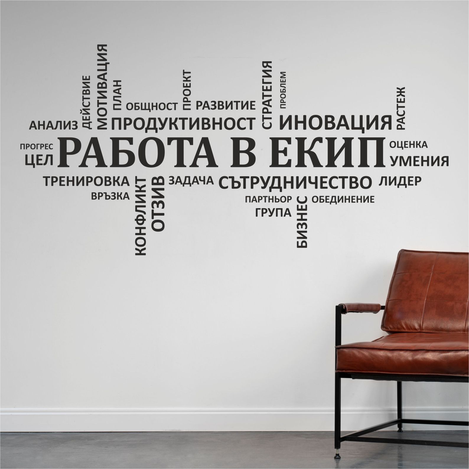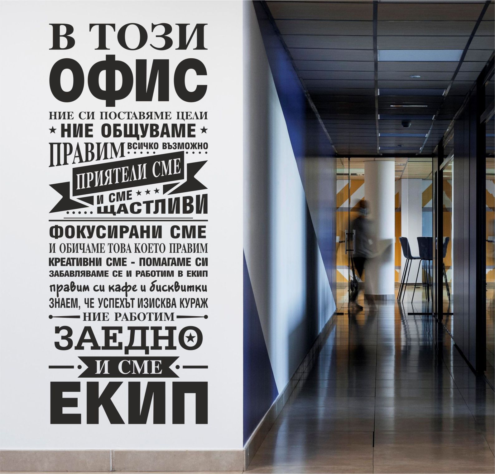 Впечатляващ стикер за стената в офиса. Актуално и креативно предложение за декорация.