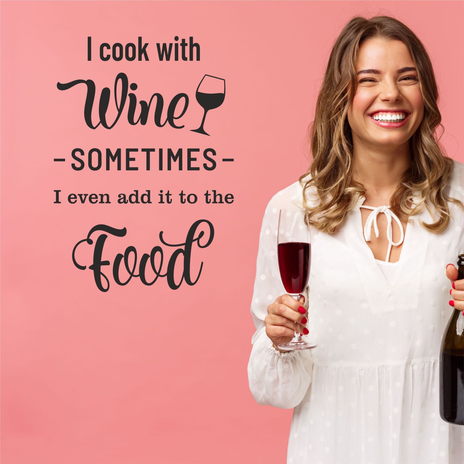 7. I cook with wine - Ефектен и забавен стикер за стена.