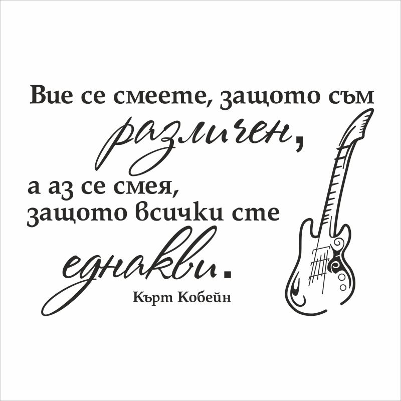 Стикер за стена с цитат от Кърт Кобейн, фронтмен на култовата група "Нирвана". Всички апликации са професионално обработени и съобразени, така че да са лесни и удобни за монтаж.