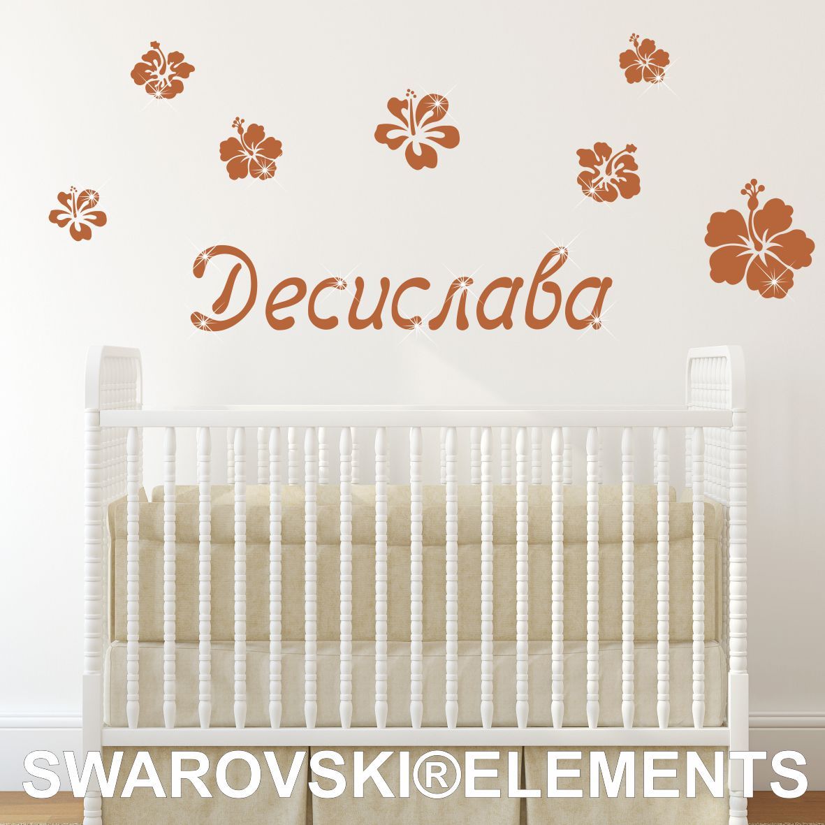 Стикер за стена с име на детето с ширина 80 см и височина около 20 см