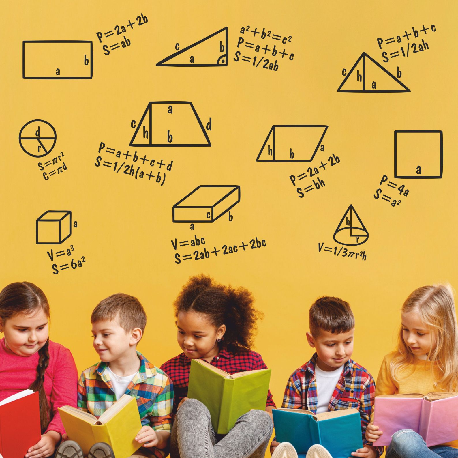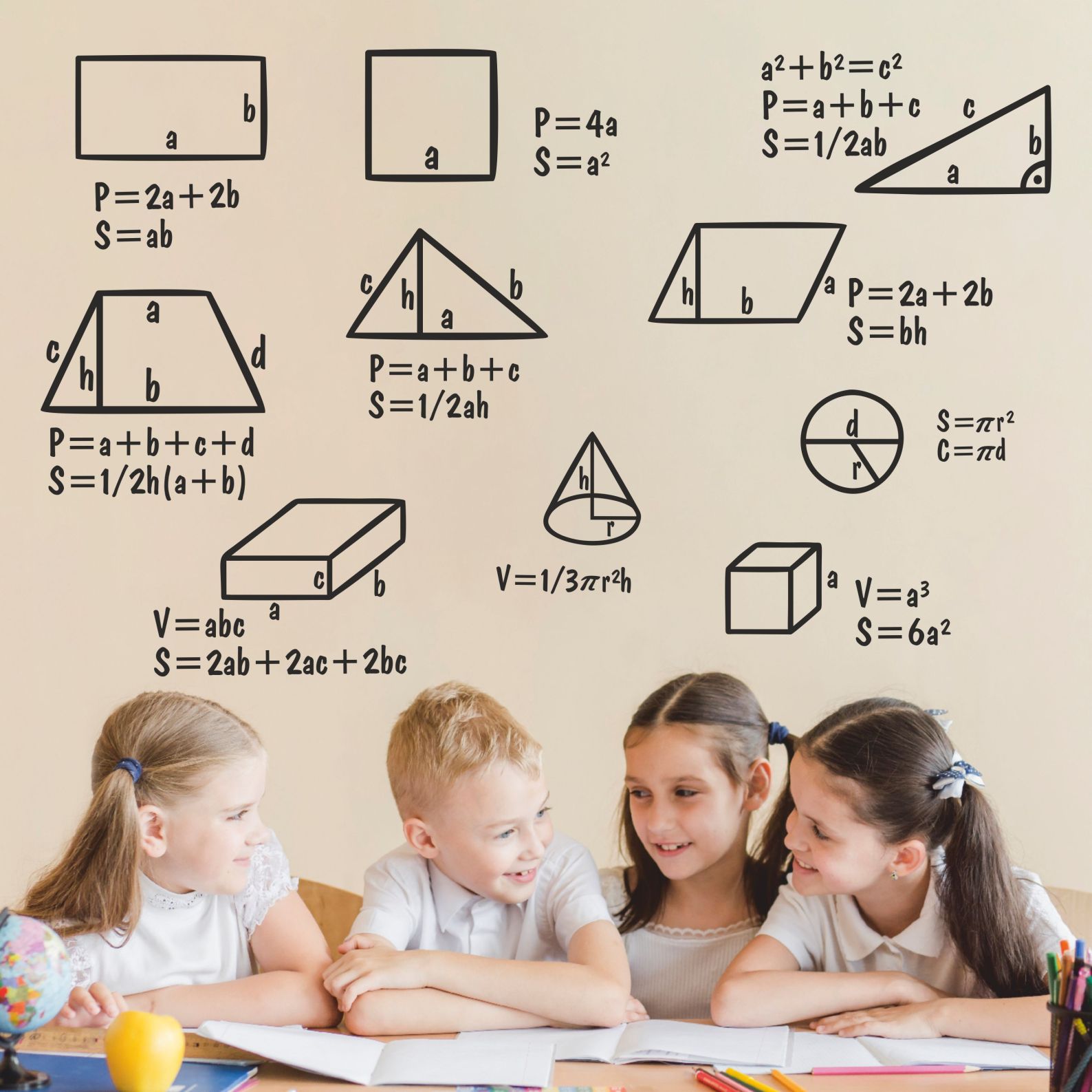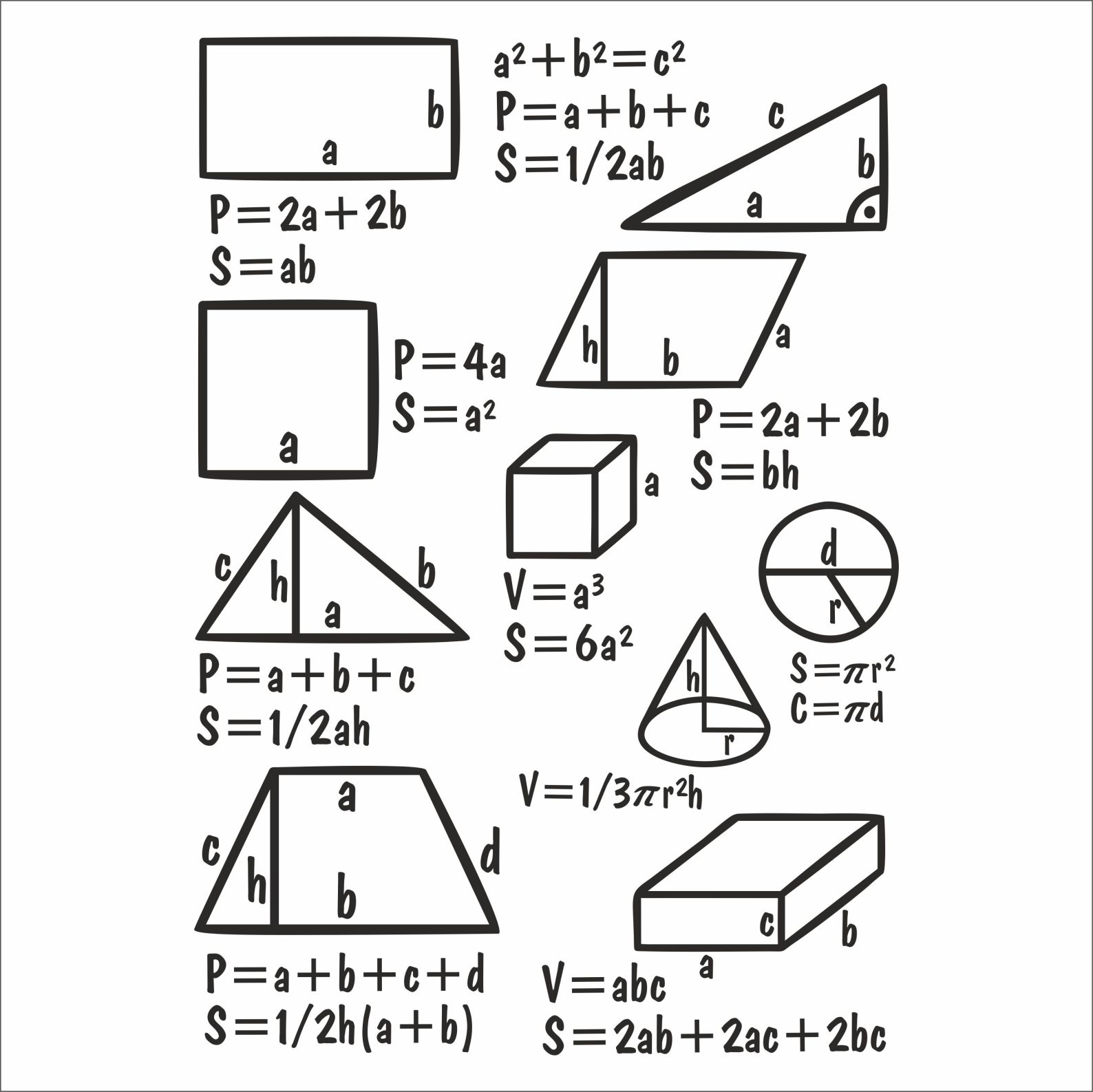 Дизайнерски стикери за стена с формулите по Геометрия. Подходящ за училища, детска стая, учебен цнетър.