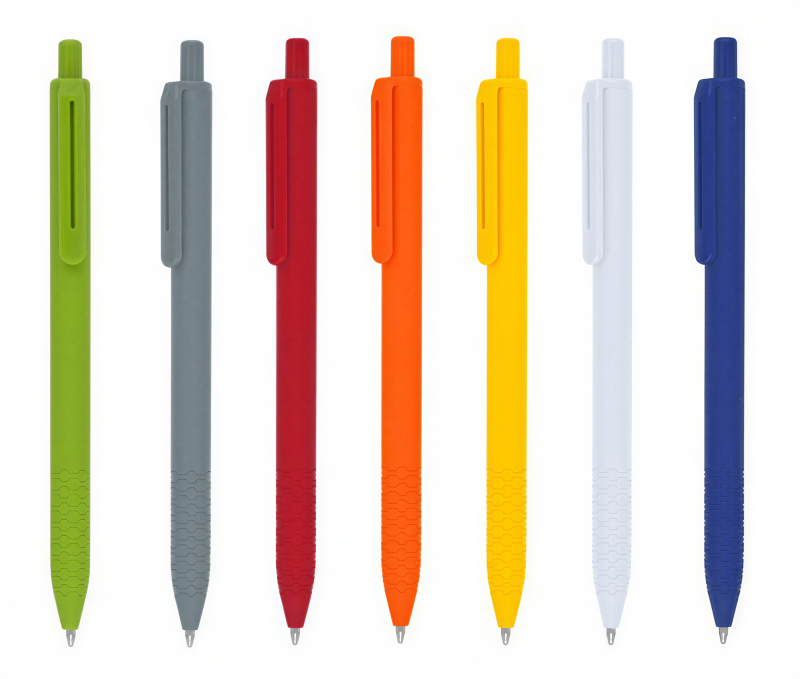 Пластмасова химикалка с гел мастило. Напечатани с тампонен печат в един или два цвята.