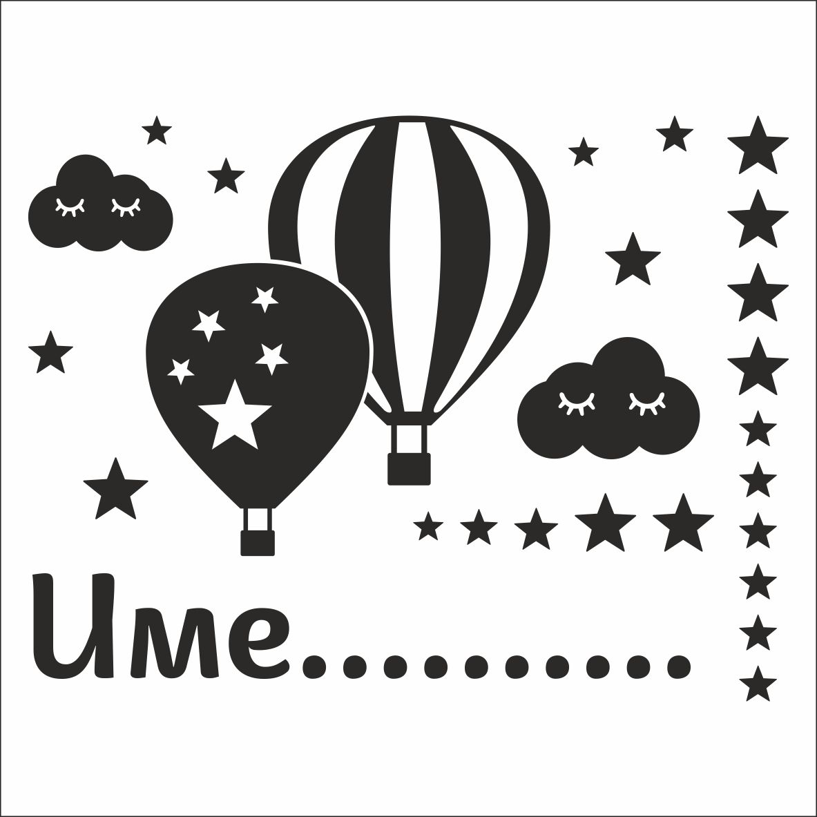 Име с балони, спящи облачета и звездички