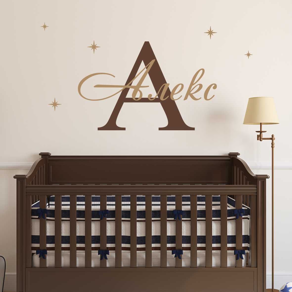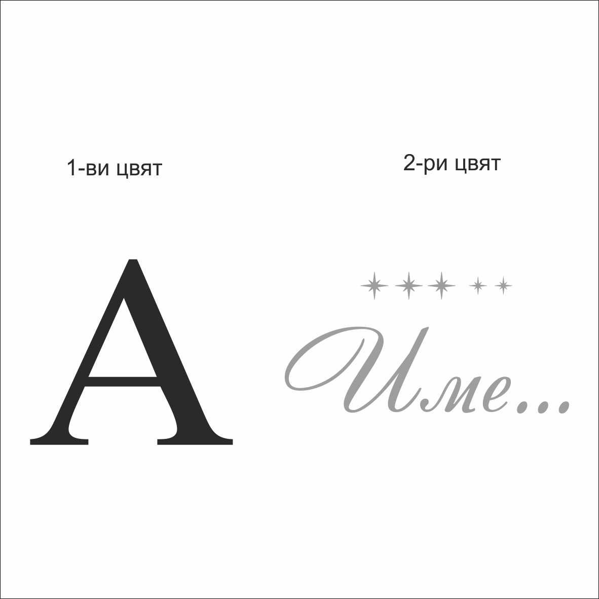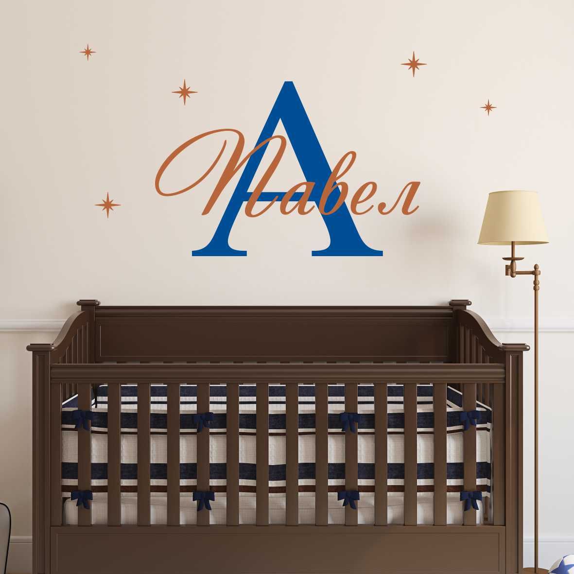 Стикер за стена Монограм с име и звезди - персонализиран. Уникално и оригинално предложение за декорация на детска стая.