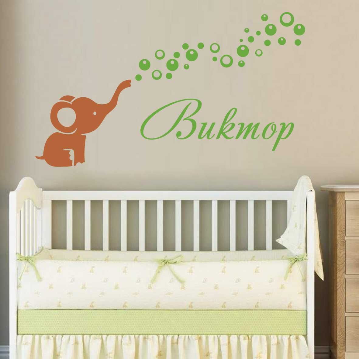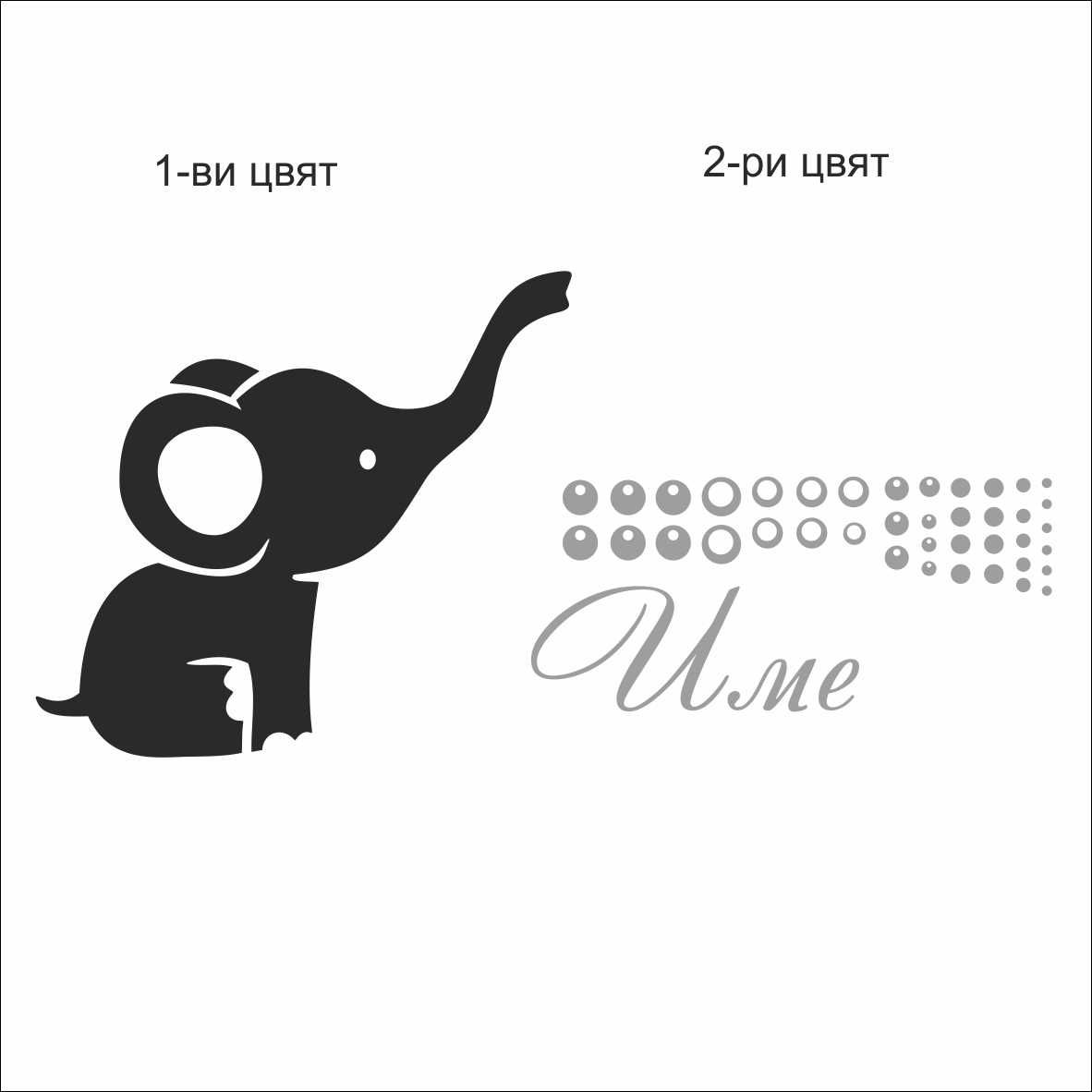 Стикер за детска стая Слонче с име на детето и мехурчета