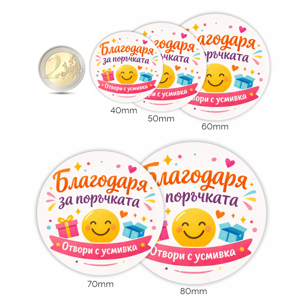 Перфектни за малък бизнес, онлайн магазини, ръчно изработени продукти и подаръци – тези стикери създават лично отношение и карат клиентите да се усмихнат още преди да отворят пратката 😊